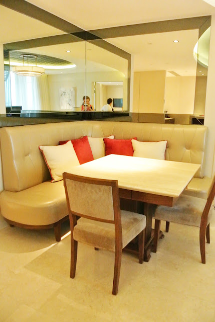 Along the way before reaching the Aquarium, a little bit of history. And here we enter to the world of fishes. It is really beautiful and so much nicer than Underwater World. But of course, considering the fact that it's new. I remember when I was young and I visited Underwater World, I was a happy kid too. After the Aquarium, we headed back to the hotel and boy, was I surprised! Le boyfriend didn't tell me that we've been upgraded to a SUITE. Like omg. I thought it was only the nice view we'll get but it was a super pleasant surprise! When we stepped in our jaws dropped. Haha... er ok not literally, but yes, we're really happy with the service provided by Equarius. 4 thumbs up! The suite is mega spacious for just the 2 of us. The suite's bathroom has 2 wash basins. Perfect! I thought one was shower area and the other is the toilet bowl. Somewhat correct... but wait till you see the photos later.....